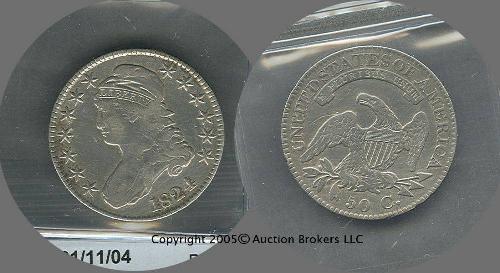 1824 Bust Half XF++; Nice appearance, lightly cleaned