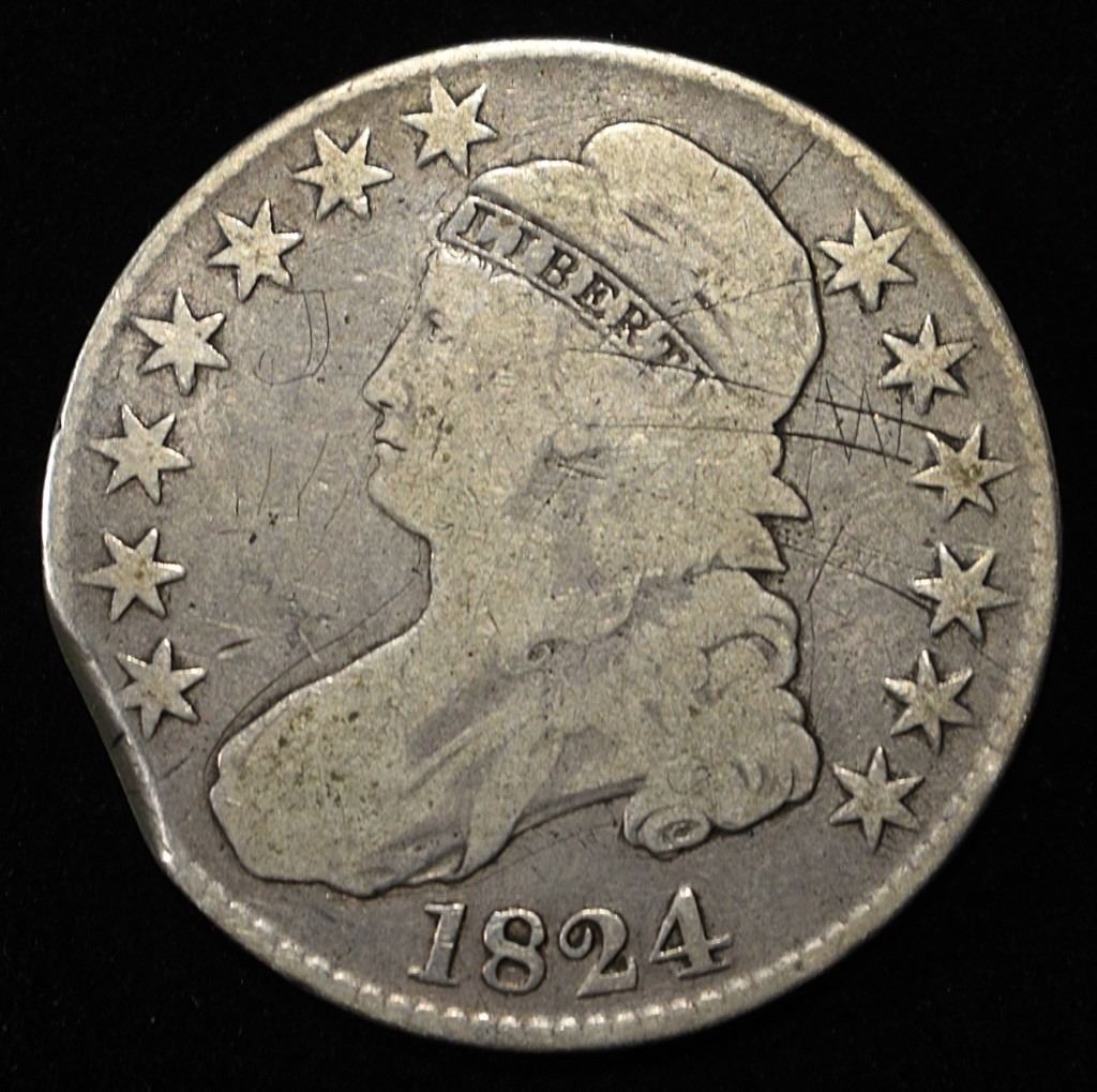 1824 CAPPED BUST HALF DOLLAR VG DAMAGED