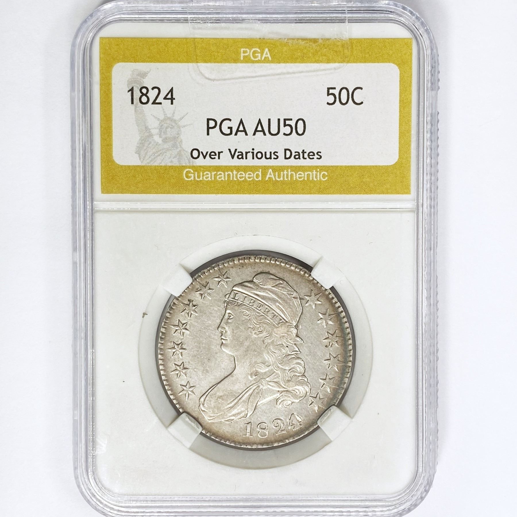 1824 Capped Bust 50C PGA AU50 Over Var. Dates