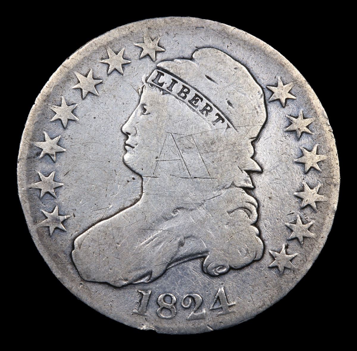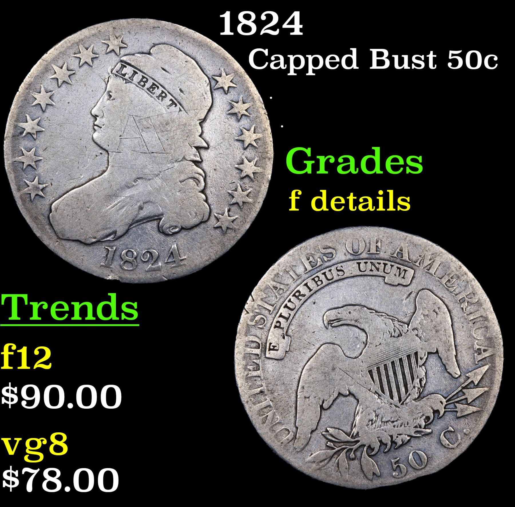 1824 Capped Bust Half Dollar 50c Grades f details.