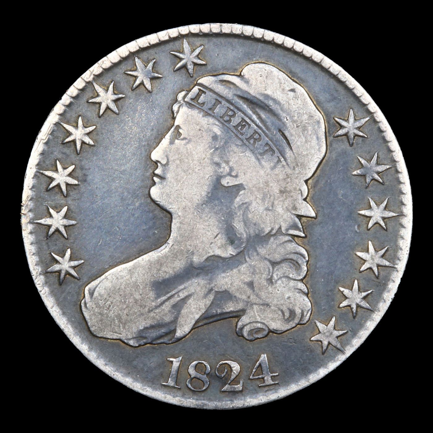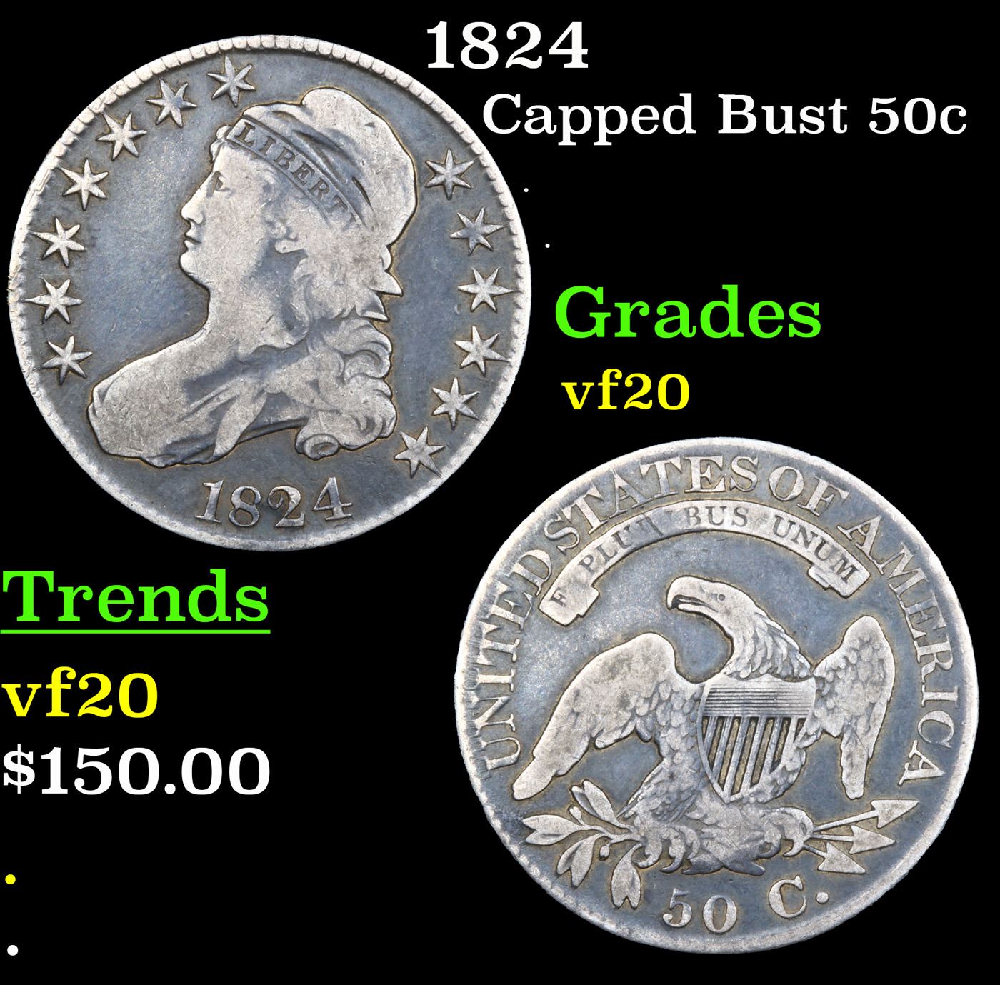 1824 Capped Bust Half Dollar 50c Grades vf, very fine.