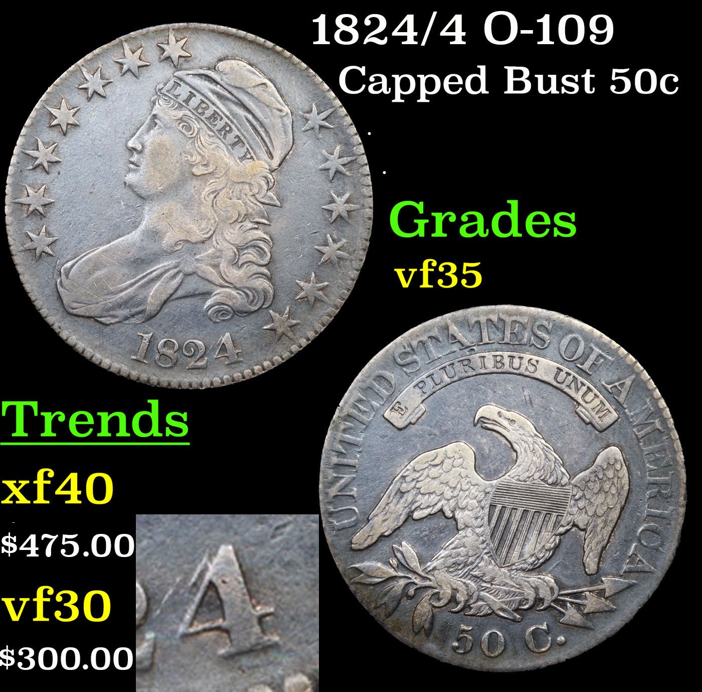 1824 Capped Bust Half Dollar 50c Grades vf++.