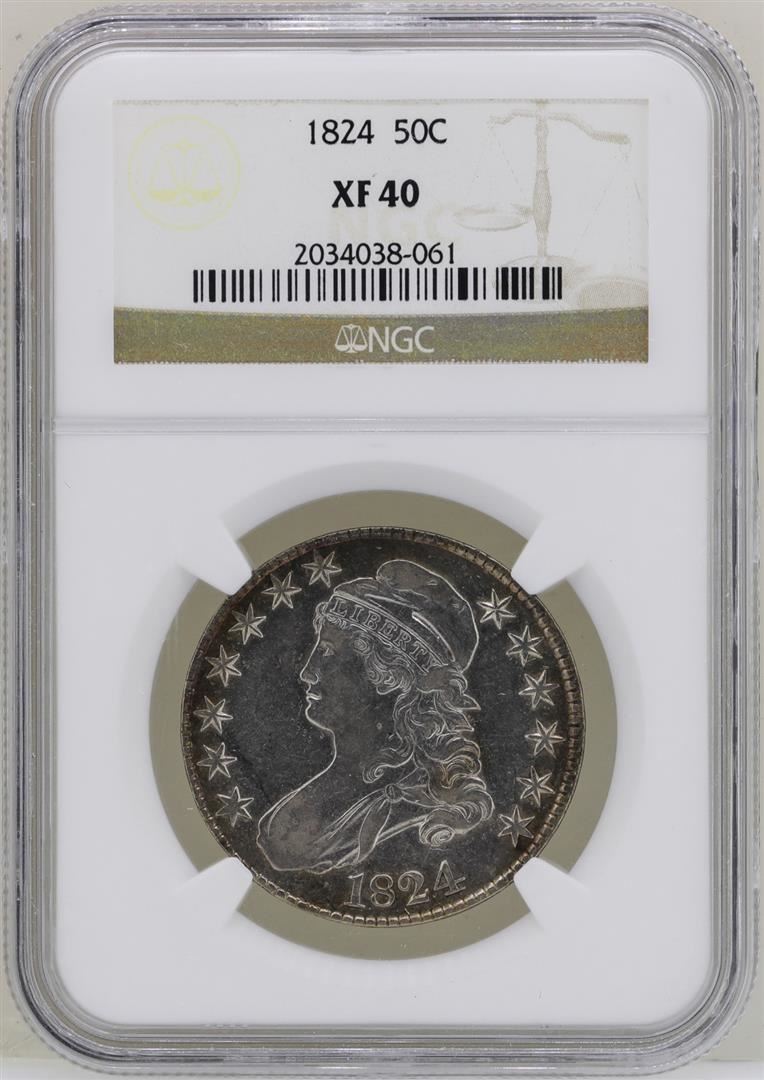 One 1824 Capped Bust Half Dollar Coin NGC XF40. NGC Certified.