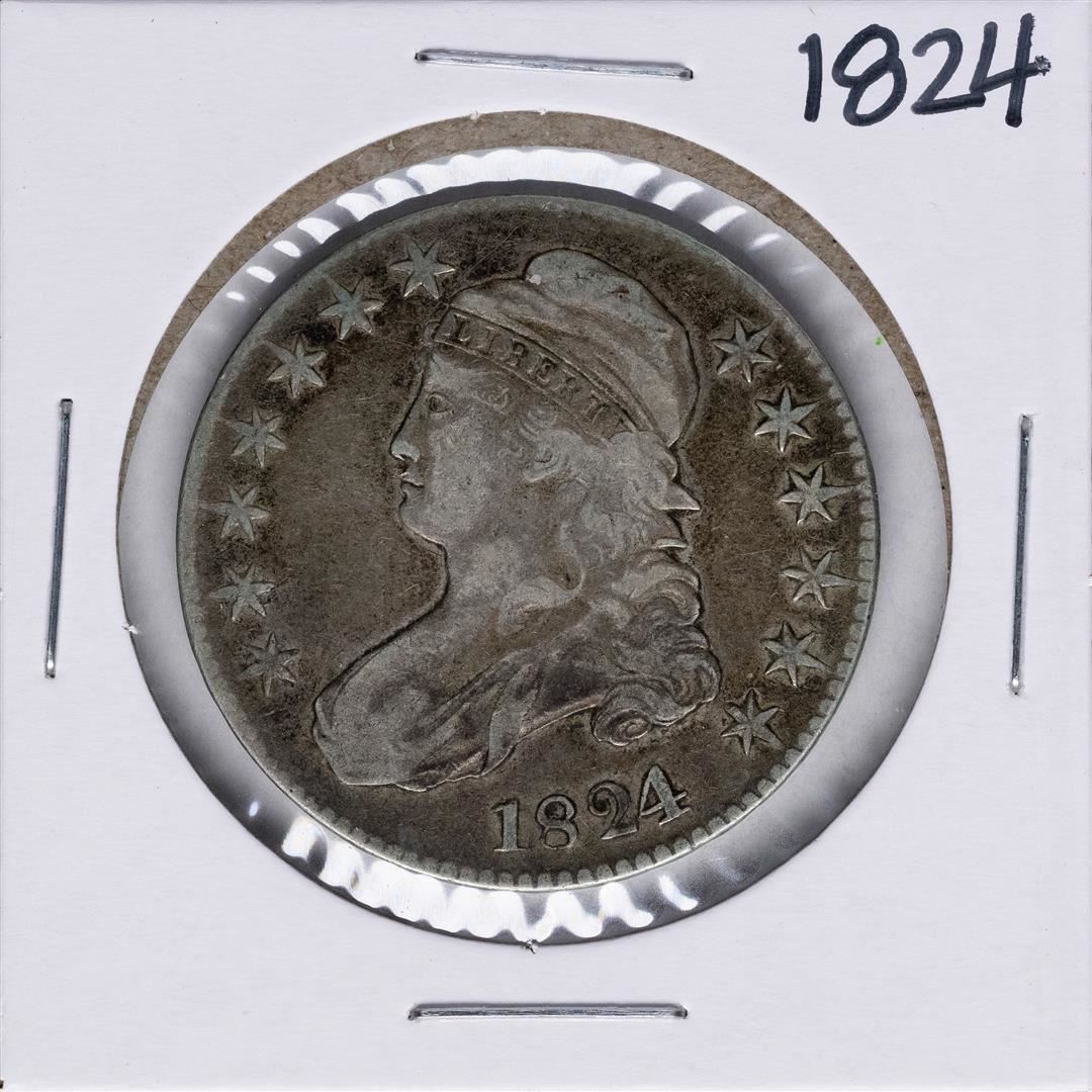 One 1824 Capped Bust Half Dollar Coin.
