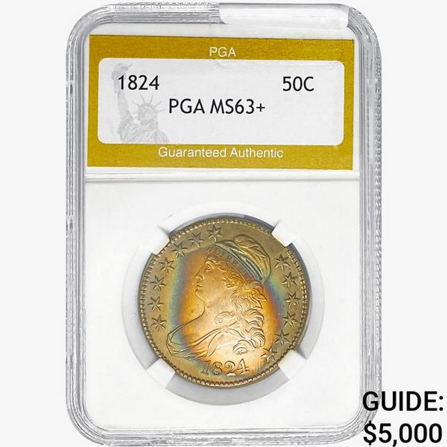 1824 Capped Bust Half Dollar PGA MS63+