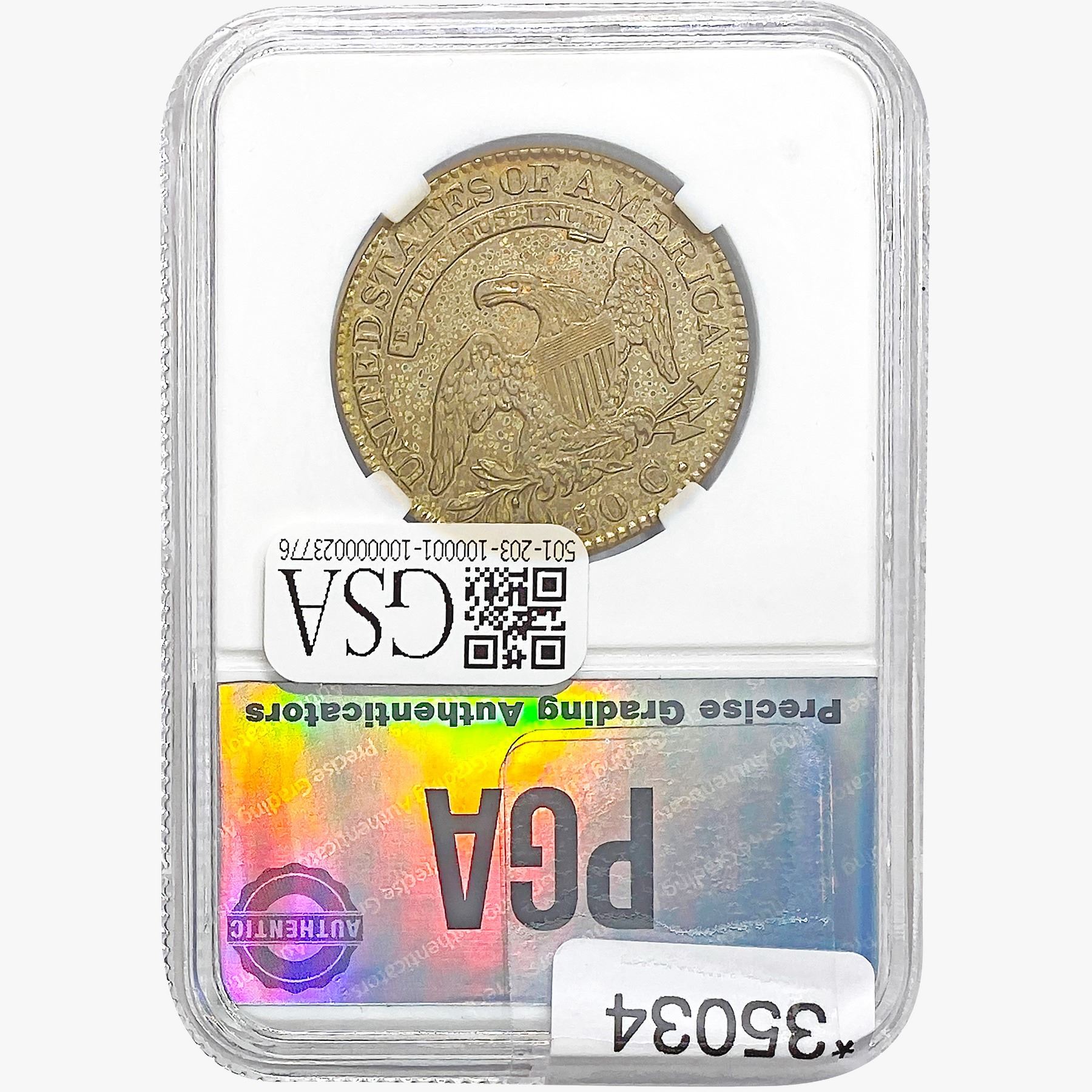 COINS AND CURRENCY LISTED IN GSA’S CATALOG AS GRADED AND ENCAPSULATED BY PCGS, NGC, ANACS, ICG, PCGS CURRENCY, PMG, PCGS BANKNOTE GRADING, CMC OR ANY OTHER THIRD-PARTY GRADING SERVICE ARE LIKEWISE SOLD “AS-IS” EXCEPT AS EXPRESSLY SET FORTH HEREIN. ALL THIRD-PARTY GRADING SERVICE GUARANTEES, INCLUDING AUTHENTICITY, ARE THE SOLE RESPONSIBILITY OF THE THIRD-PARTY GRADING SERVICE AND NOT WARRANTIES OR GUARANTEES OF GSA. BIDDERS SHOULD CONTACT THESE THIRD-PARTY GRADING SERVICES DIRECTLY WITH RESPECT TO ANY CLAIMS OR QUESTIONS THEY MAY HAVE CONCERNING THEIR GUARANTEES AND WARRANTIES. BIDDERS ACKNOWLEDGE AND AGREE THAT AUCTIONEER IS NOT BOUND BY OR LIABLE FOR ANY OPINION OR CERTIFICATION BY ANY THIRD-PARTY GRADING SERVICE. REMOVAL OF A PRODUCT FROM ITS PROTECTIVE CASING OR HOLDER OR ALTERATION OF ANY COIN HOLDER WAIVES ALL RIGHTS CONCERNING THE PRODUCT CONTAINED THEREIN.