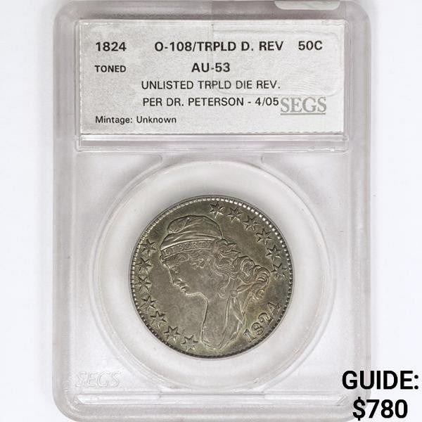 1824 Capped Bust Half Dollar SEGS AU53 Trpld Die R