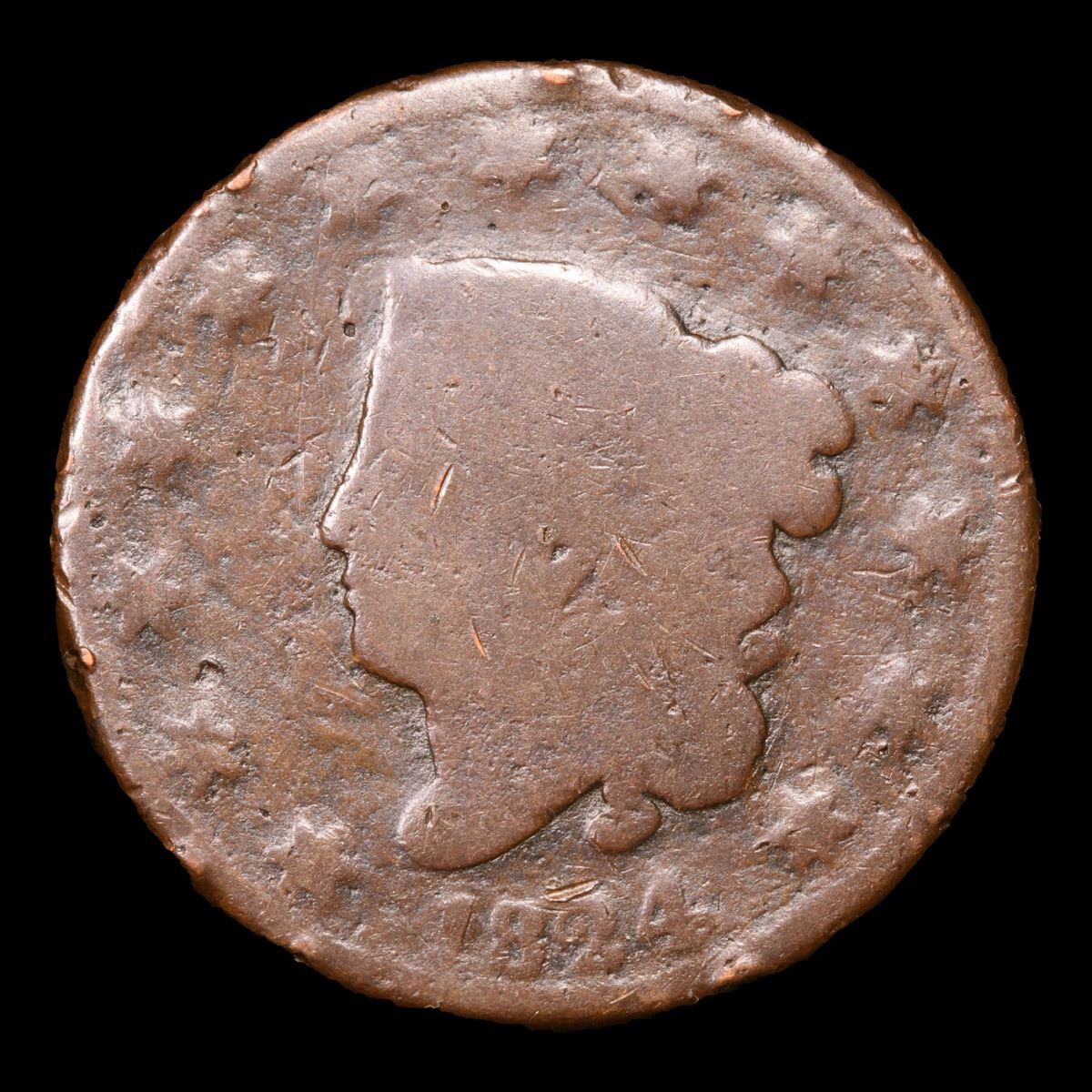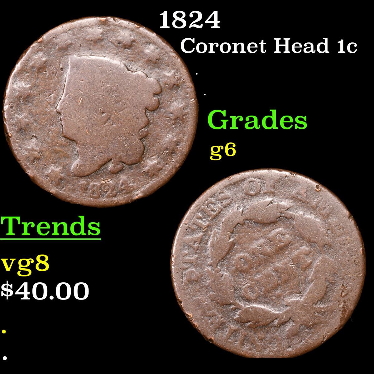 1824 . . Coronet Head Large Cent 1c Grades g+.