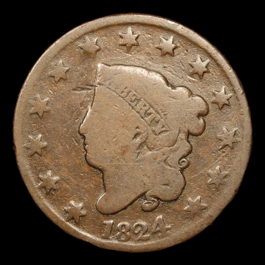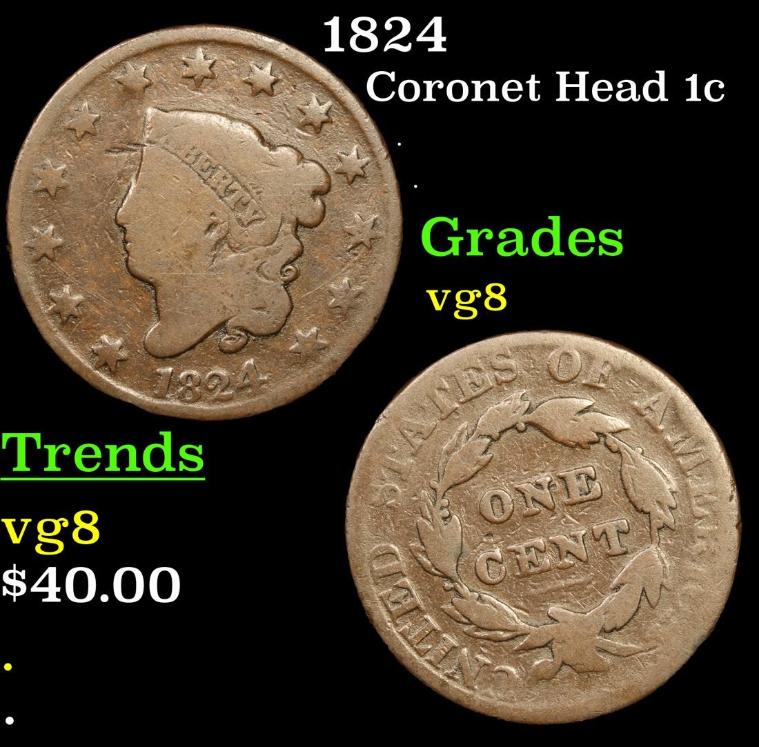 1824 . . Coronet Head Large Cent 1c Grades vg, very good.
