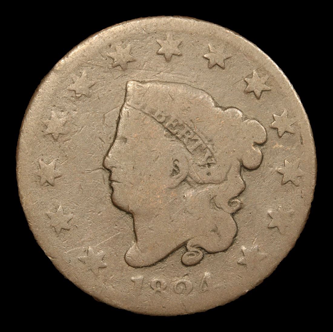 1824 . . Coronet Head Large Cent 1c Grades vg+.