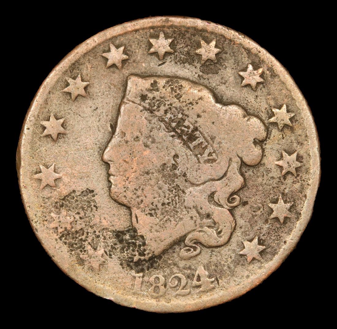 1824 . . Coronet Head Large Cent 1c Grades vg+.