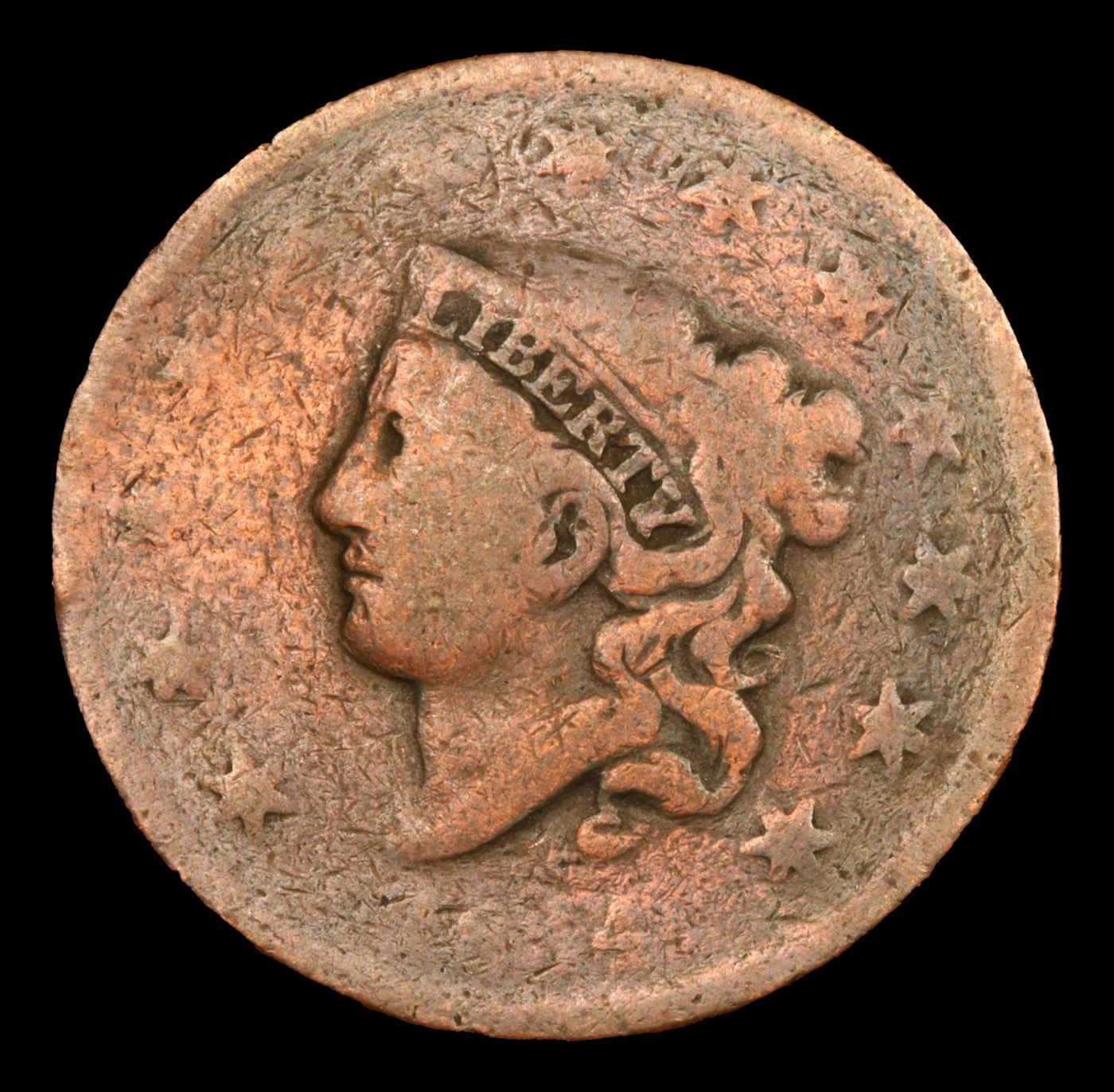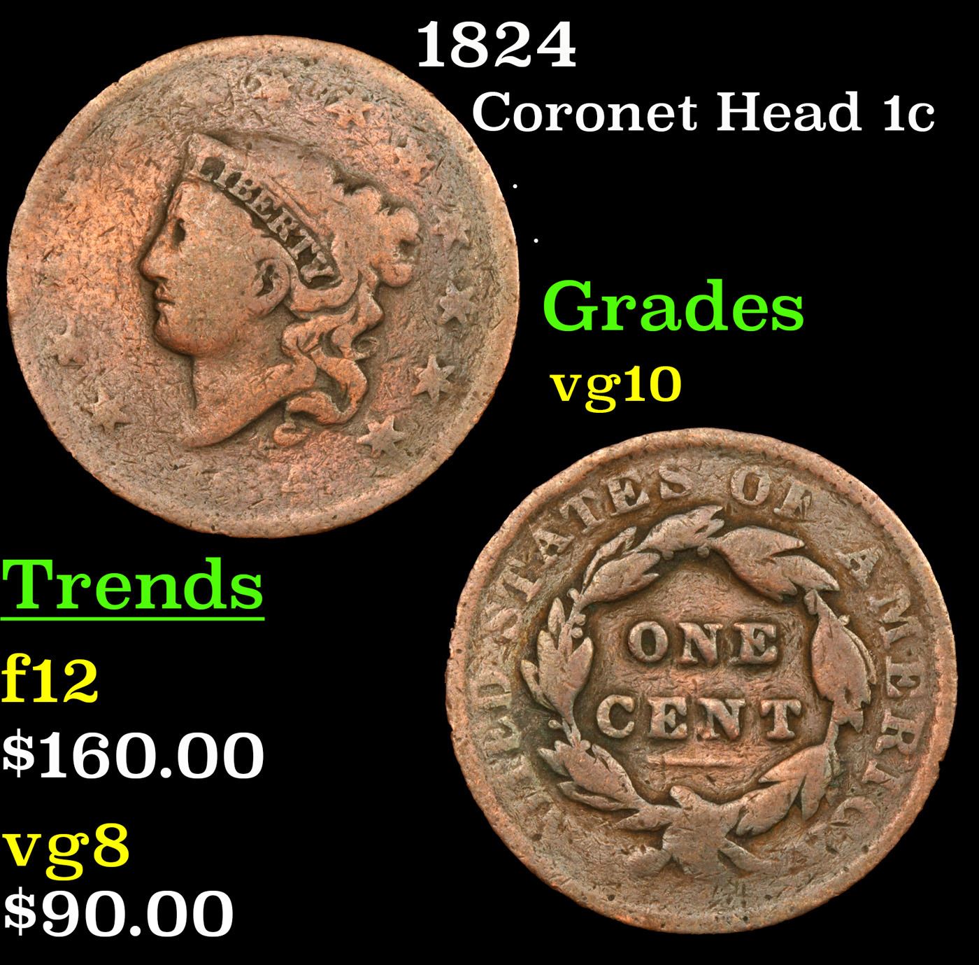 1824 Coronet Head Large Cent 1c Grades vg+.