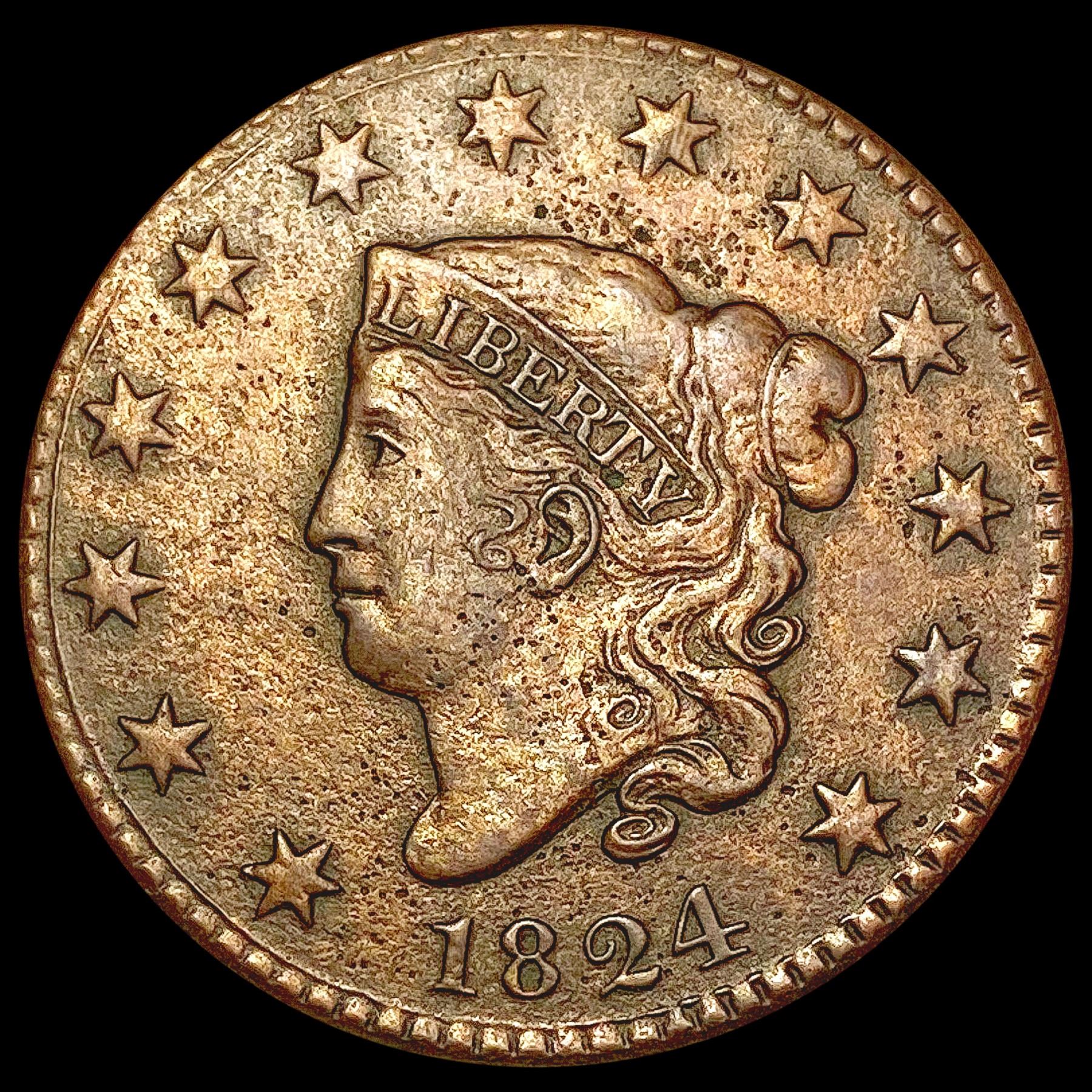 1824 Coronet Head Large Cent LIGHTLY CIRCULATED