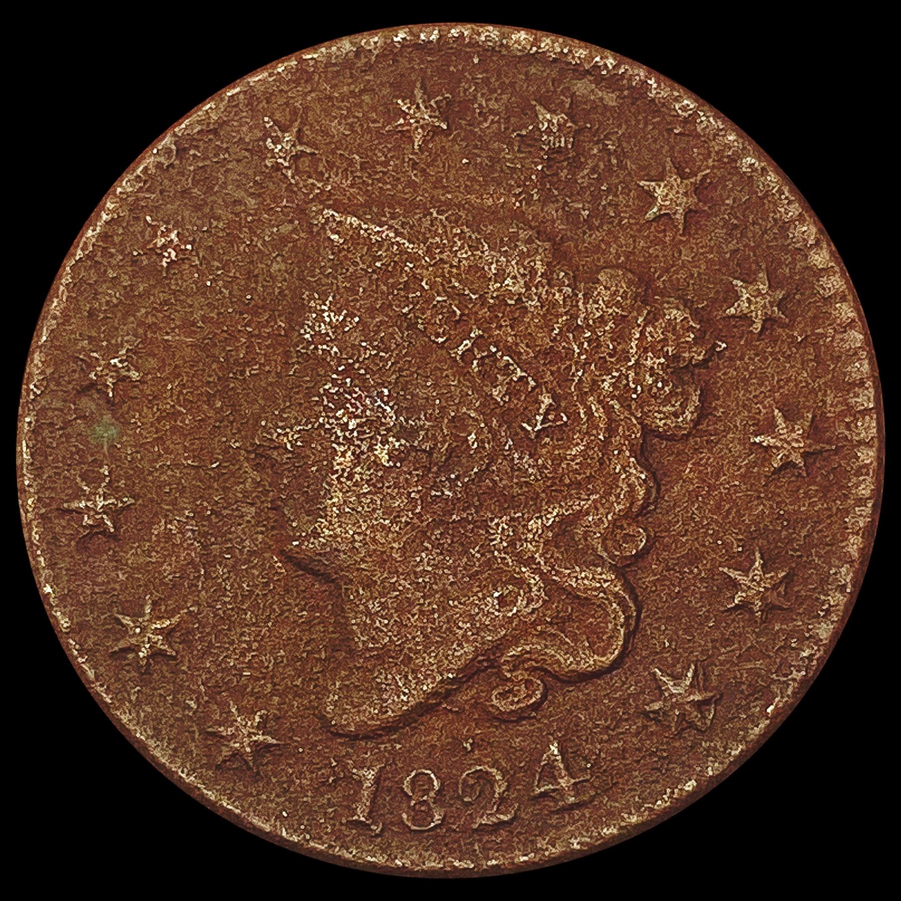 1824 Coronet Head Large Cent NICELY CIRCULATED