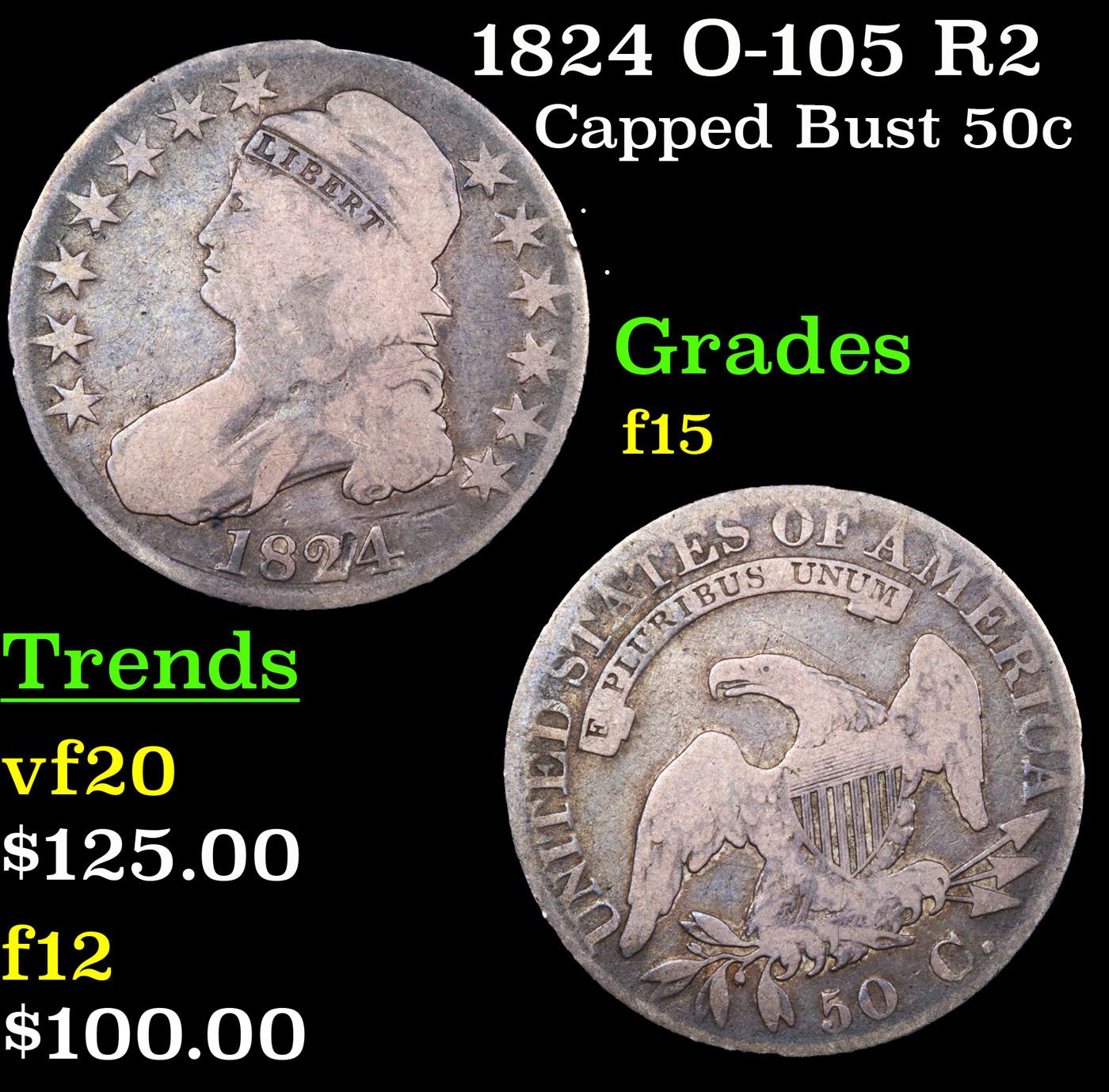 1824 O-105 R2 Capped Bust Half Dollar 50c Grades f+.