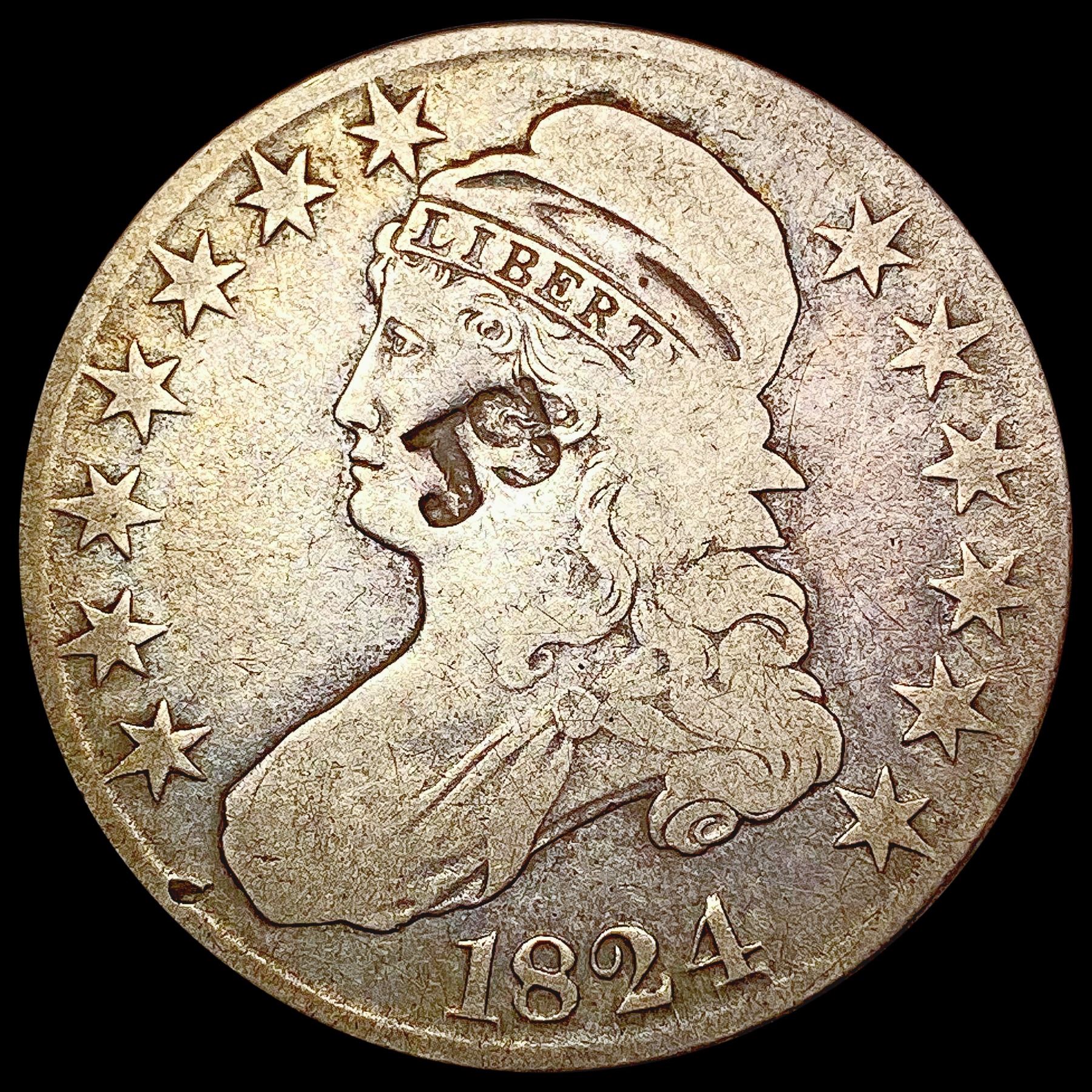 1824 O-106 JS Counterstamp Capped Bust Half Dollar NICELY CIRCULATED