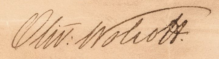 OLIVER WOLCOTT JR. (1760-1833). American Revolution Soldier, Officer and Patriot, U.S. Secretary of the Treasury succeeding Alexander Hamilton.