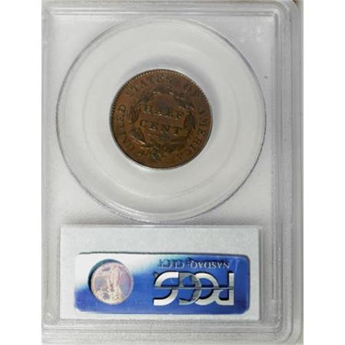 <B>1825 1/2 C AU58 PCGS.</B></I> PCGS Population (23/45). NGC Census: (38/58). Mintage: 63,000. Numismedia Wsl. Price for NGC/PCGS coin in AU58: $450. (#1141)<BR><BR><B>Coin Engraver:</B> John Reich<BR><BR><b>Shipping:</b> Coins & Currency (<a target="_blank" href="http://www.heritageauctions.com/common/shipping.php">view shipping information</a>)
