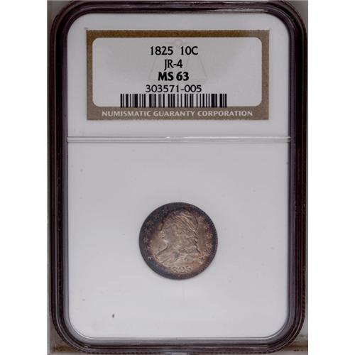 1825 10C MS63 NGC. JR-4, R.2. Easily attributed by sta 1825[10C] MS63 NGC.