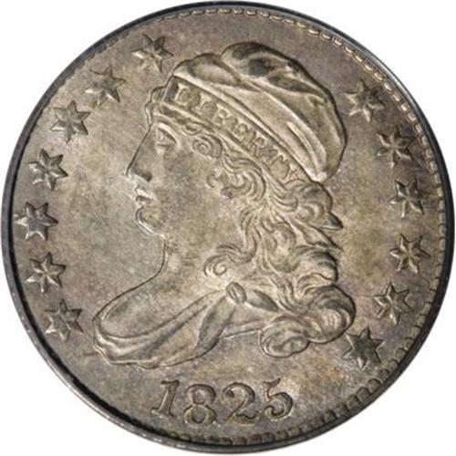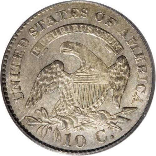 <B>1825 10C MS64 PCGS.</B></I> JR-1, R.4. Olive and rose shades enrich this satiny and attractive near-Gem. Patience and a strong glass is required to locate a few nearly imperceptible slide marks on the cheek. A good strike overall, despite moderate blending of plumage detail on the eagle's neck.<BR><BR><B>Coin Engraver:</B> John Reich<BR><BR><b>Shipping:</b> Coins & Currency (<a target="_blank" href="http://www.heritageauctions.com/common/shipping.php">view shipping information</a>)
