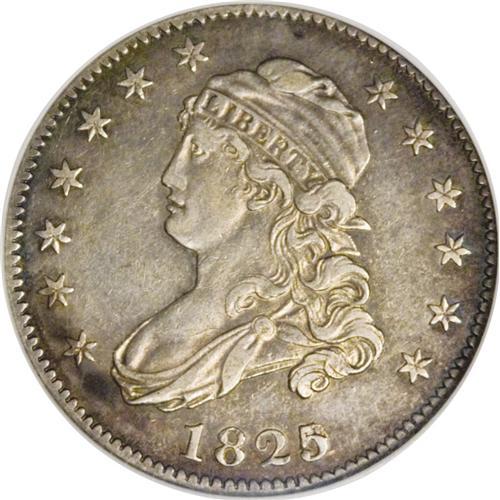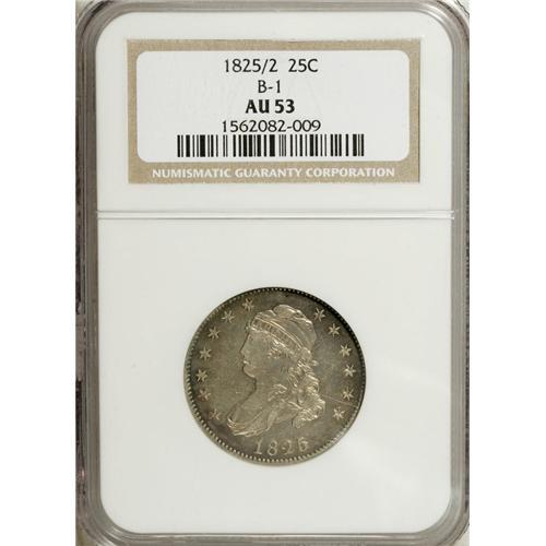 1825/2 25C AU53 NGC. B-1, R.5. The rare Browning-1 qua