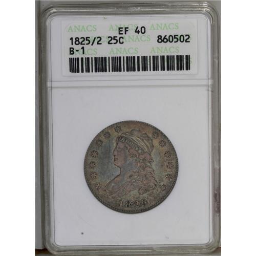1825/2 25C XF40 ANACS. B-1, R.5. This rarity has broad