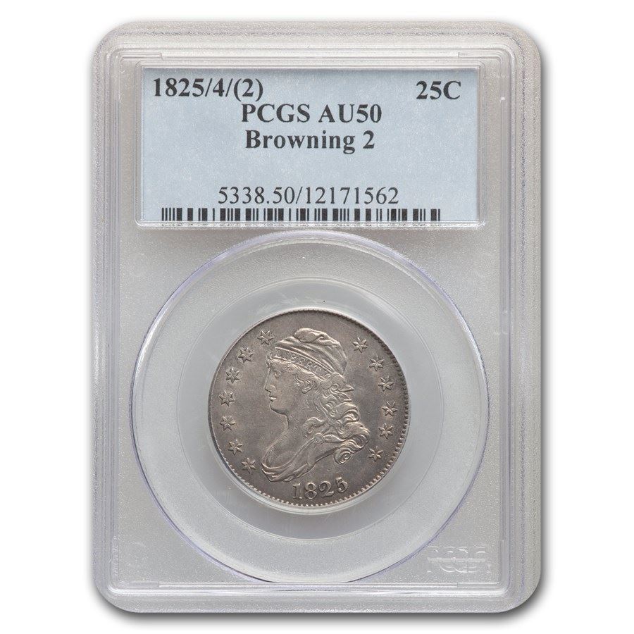 1825/4(2) Capped Bust Quarter AU-50 PCGS (Browning 2)