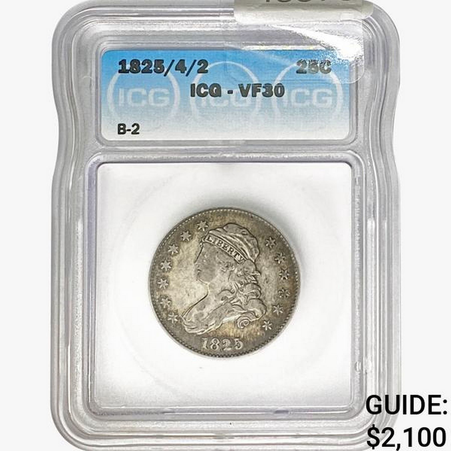 1825/4/2 Capped Bust Quarter ICG VF30