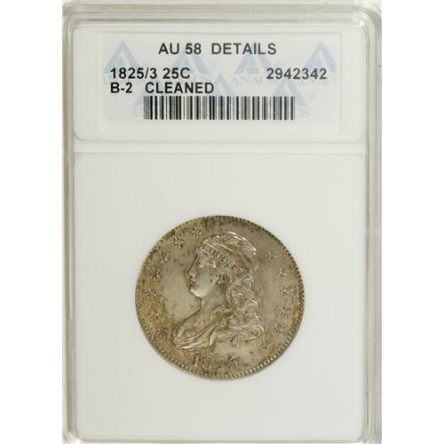 1825/4/3 25C --Cleaned--ANACS. AU58 Details. B-2, R.2.