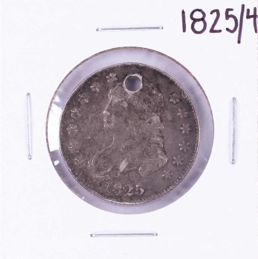 One 1825/4 Capped Bust Quarter Coin with Hole.