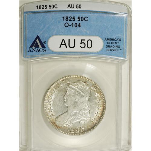 1825 50C AU50 ANACS. O-104. NGC Census: (42/581).