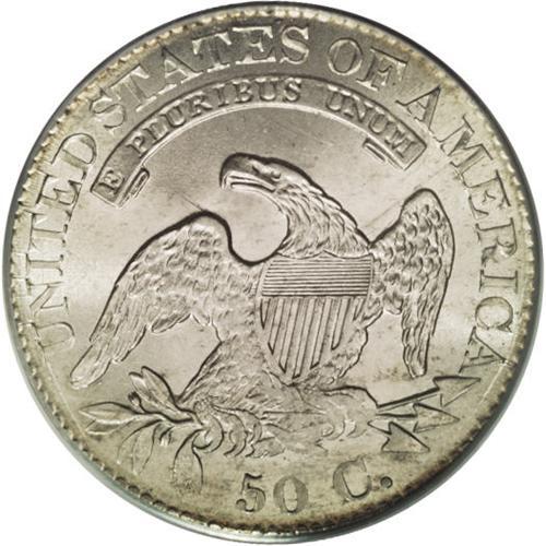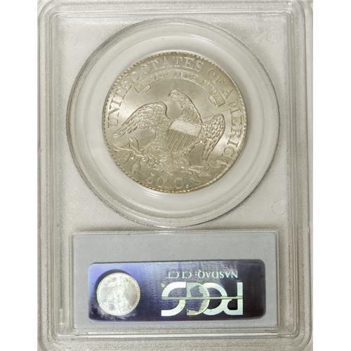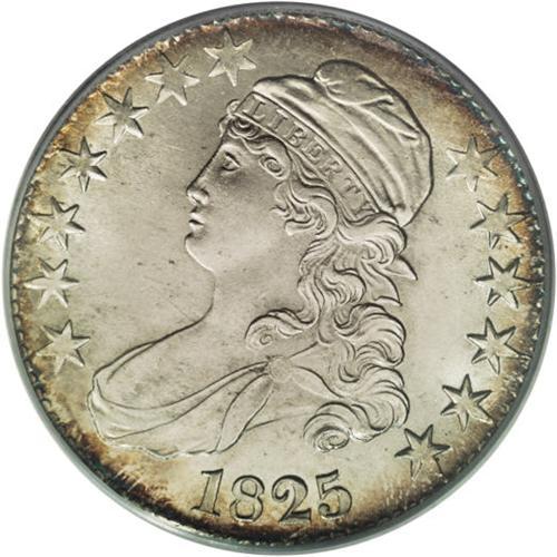 1825 50C MS63 PCGS. O-106a, R.3. The recut flag of the