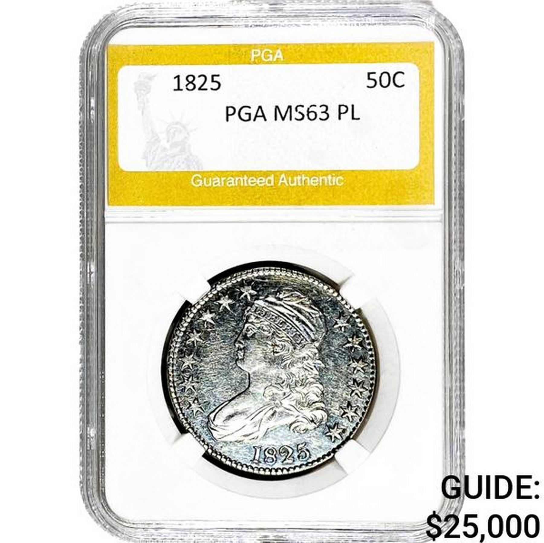 1825 Capped Bust Half Dollar PGA MS63 PL