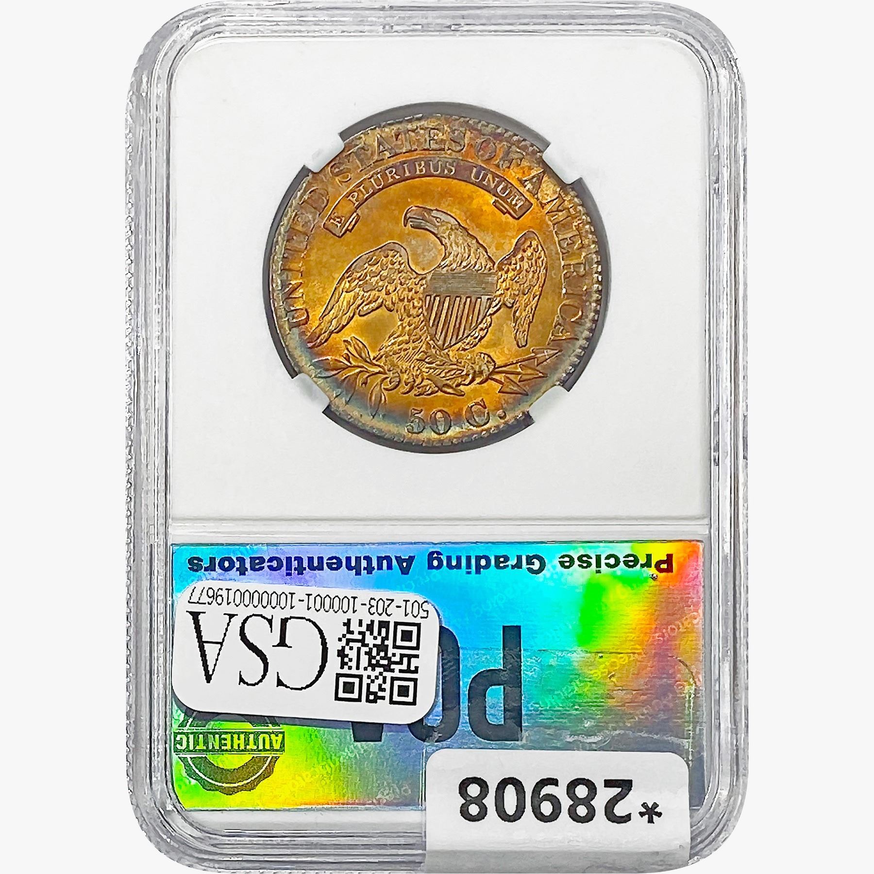 l. All non-certified coins and currency are guaranteed genuine, but are not guaranteed as to grade, since grading is a matter of opinion, an art and not a science, and therefore the description rendered by GSA or any third-party grading service may not agree with the opinion of others (including trained experts), and the same expert may not grade the same item with the same grade at two different times. GSA may, but is not obligated to, express an opinion as to non-certified numismatic items, in GSA’s opinion, or by its employees’ experience and the current interpretation of the American Numismatic Association’s standards as of the date the catalog was prepared. There is no guarantee or warranty expressed or implied that the grading opinions utilized by GSA, if any, will meet the standards of any grading service at any time in the future.