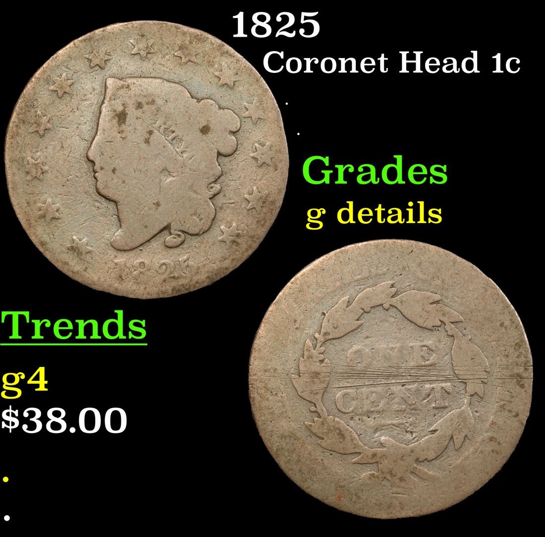 1825 . . Coronet Head Large Cent 1c Grades g details.