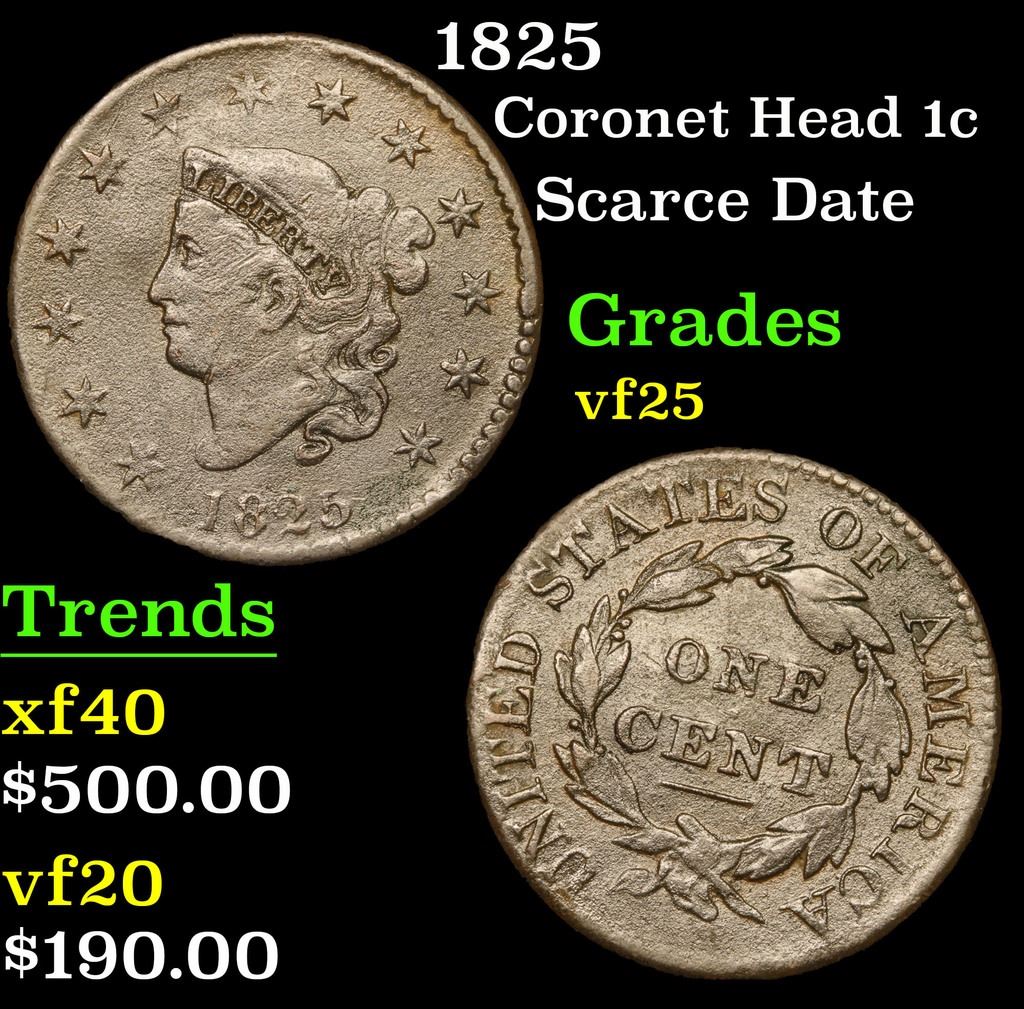 1825 . . Coronet Head Large Cent 1c Grades vf+.
