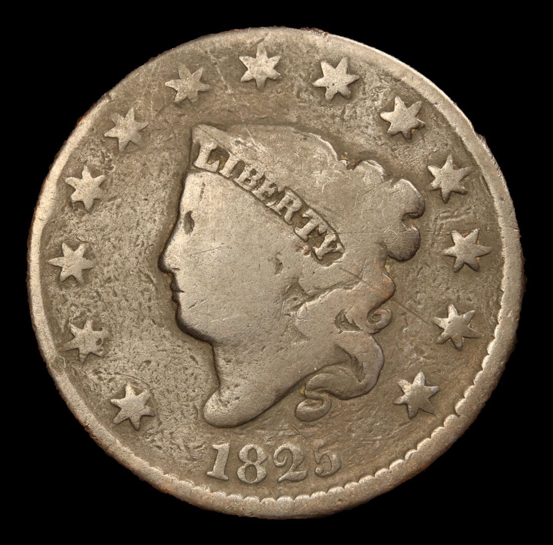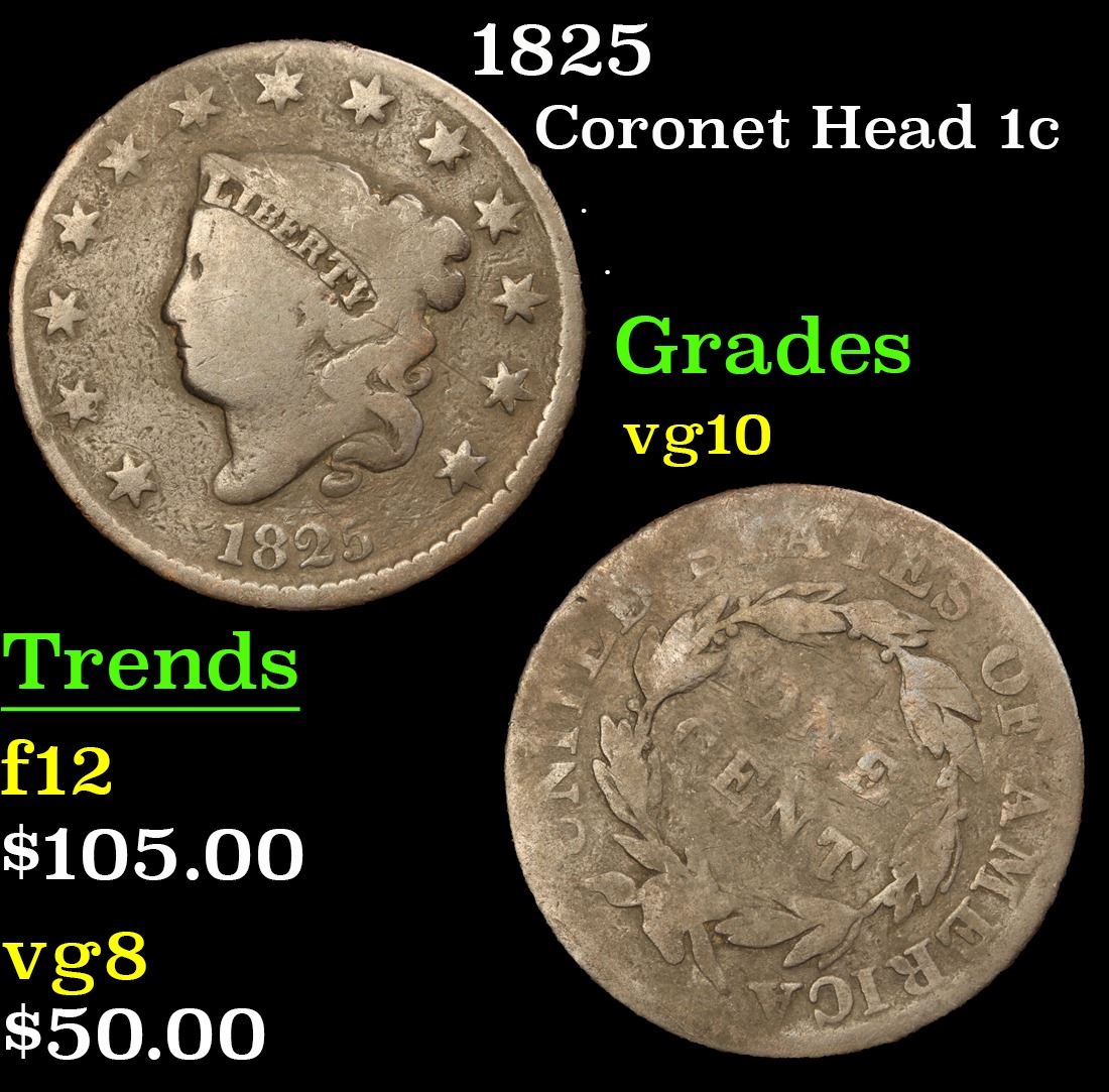 1825 . . Coronet Head Large Cent 1c Grades vg+.