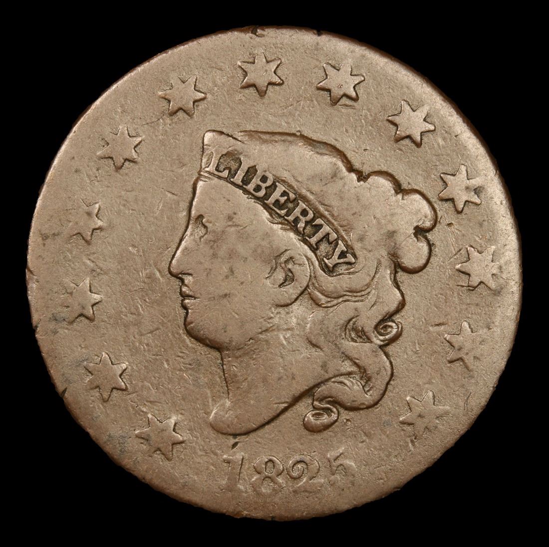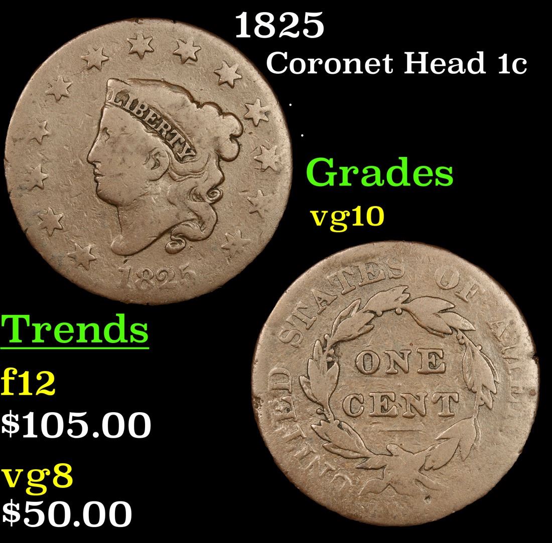 1825 . . Coronet Head Large Cent 1c Grades vg+.