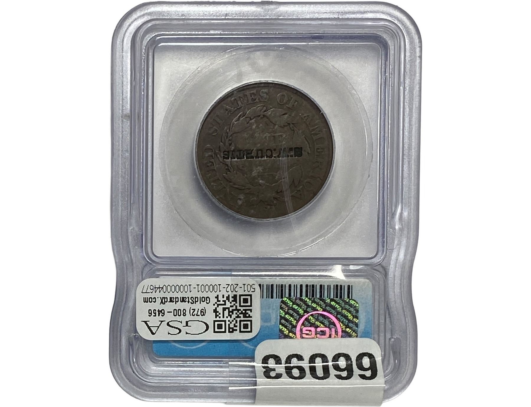 l. All non-certified coins and currency are guaranteed genuine, but are not guaranteed as to grade, since grading is a matter of opinion, an art and not a science, and therefore the description rendered by GSA or any third-party grading service may not agree with the opinion of others (including trained experts), and the same expert may not grade the same item with the same grade at two different times. GSA may, but is not obligated to, express an opinion as to non-certified numismatic items, in GSA’s opinion, or by its employees’ experience and the current interpretation of the American Numismatic Association’s standards as of the date the catalog was prepared. There is no guarantee or warranty expressed or implied that the grading opinions utilized by GSA, if any, will meet the standards of any grading service at any time in the future.