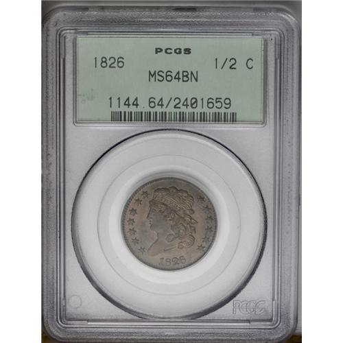 1826 1/2 C MS64 Brown PCGS. B-1, C-1, R.1. Light tan w 1826