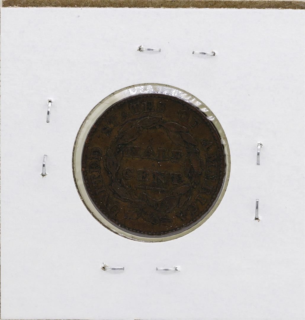 One 1826 13 Stars Draped Bust Half Cent Coin.