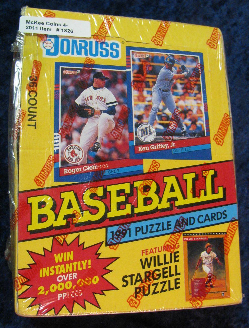 1826. 1991 Donruss Unopened Wax Box of Baseball Cards.