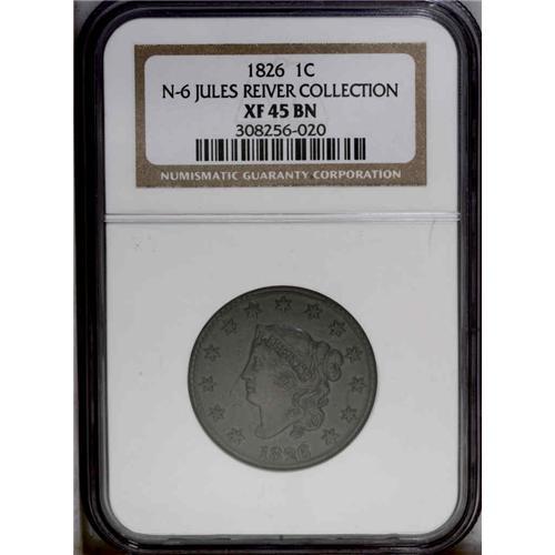 1826 1C N-6, R.2. XF45 NGC. VF30 EAC. An intermediate 1826[1C] N-6, R.2. XF45 NGC. VF30 EAC.
