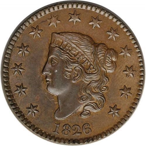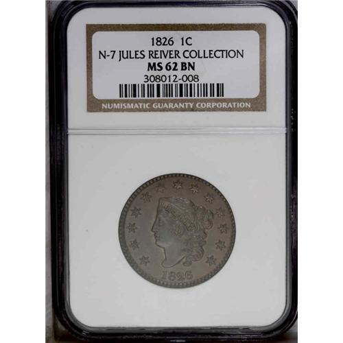 1826 1C N-7, R.1. MS62 Brown NGC. AU55 EAC. Graded a c 1826[1C] N-7, R.1. MS62 Brown NGC. AU55 EAC.