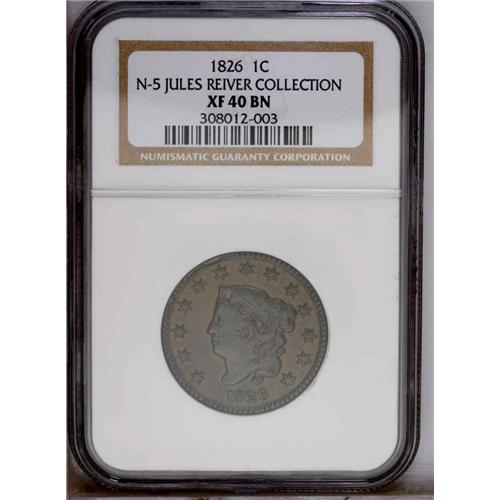 1826 1C XF40 NGC. N-5, Late Die State, High R.2. Rim b 1826[1C] N-5, High R.2. XF40 NGC. VF20 EAC.