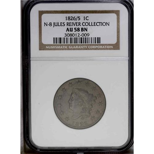 1826/5 1C N-8, R.2. AU58 NGC. VF30 EAC. Even though th 1826/5[1C] N-8, R.2. AU58 NGC. VF30 EAC.
