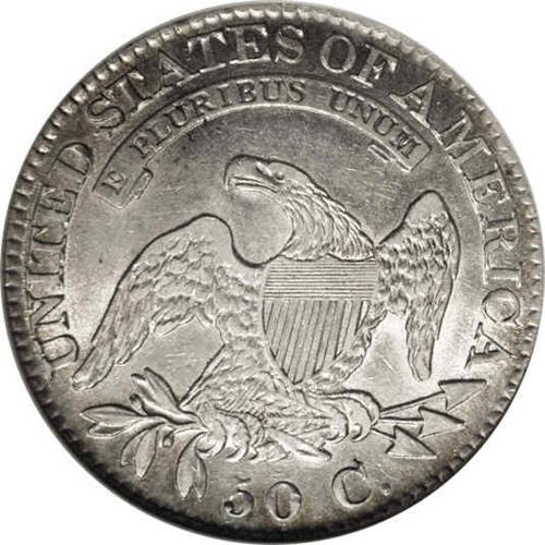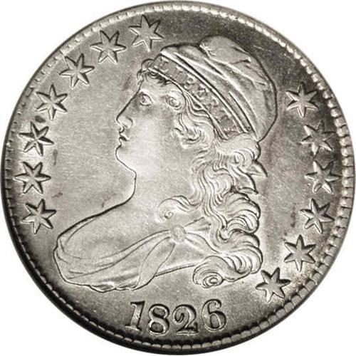 <B>1826<50C> AU53 NGC.</B></I> O-106, R.3. Peripheral golden-tan patina accompanies the slate-gray centers. A band of luster connects the obverse stars. The strike is very good, save for typical softness on the obverse stars, and the surfaces are lightly hairlined and free of distracting abrasions. The dies are rotated counterclockwise, by approximately 40 degrees.<BR><I>Ex: Stack's (12/26/1988).</B></I> Envelope Included.
