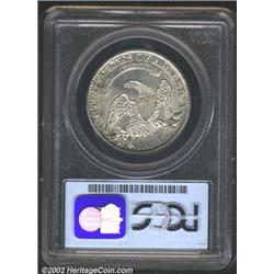 1826 50C AU55 PCGS. O-107, R.3. The 8 in the date appears to be triple punched. Certainly lustrous for the grade, with pleasing surfaces and attractive peripheral tobacco-brown color. The reverse periphery has several heavy and lengthy die cracks that are as struck. Important notice: We expect to be auctioning lots at the rate of 200-250 per hour. Sometimes eBay Premier live bid software cannot keep up with that pace, so we strongly recommend that you place a realistic proxy bid now as insurance to avoid disappointment. Also please note that all Heritage/CAA lots purchased through eBay Premier carry a 20% Buyer's Premium. Please make sure you read the Terms and Conditions.
