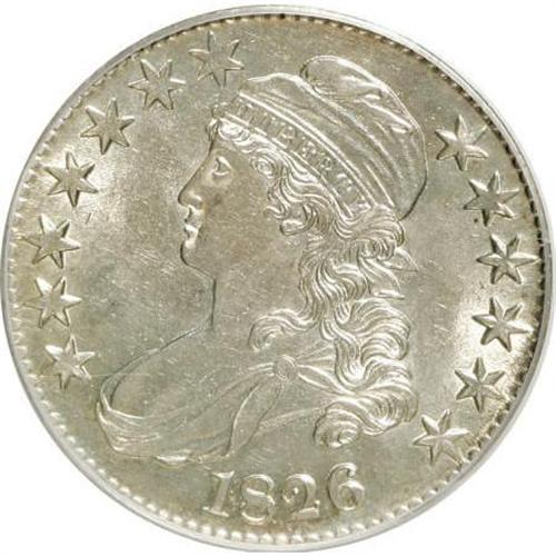 <B>1826 50C AU58 PCGS.</B></I> PCGS Population (157/357). NGC Census: (259/642). Mintage: 4,000,000. Numismedia Wsl. Price for NGC/PCGS coin in AU58: $585. (#6143)<BR><BR><B>Coin Engraver:</B> John Reich<BR><BR><b>Shipping:</b> Coins & Currency (<a target="_blank" href="http://www.heritageauctions.com/common/shipping.php">view shipping information</a>)