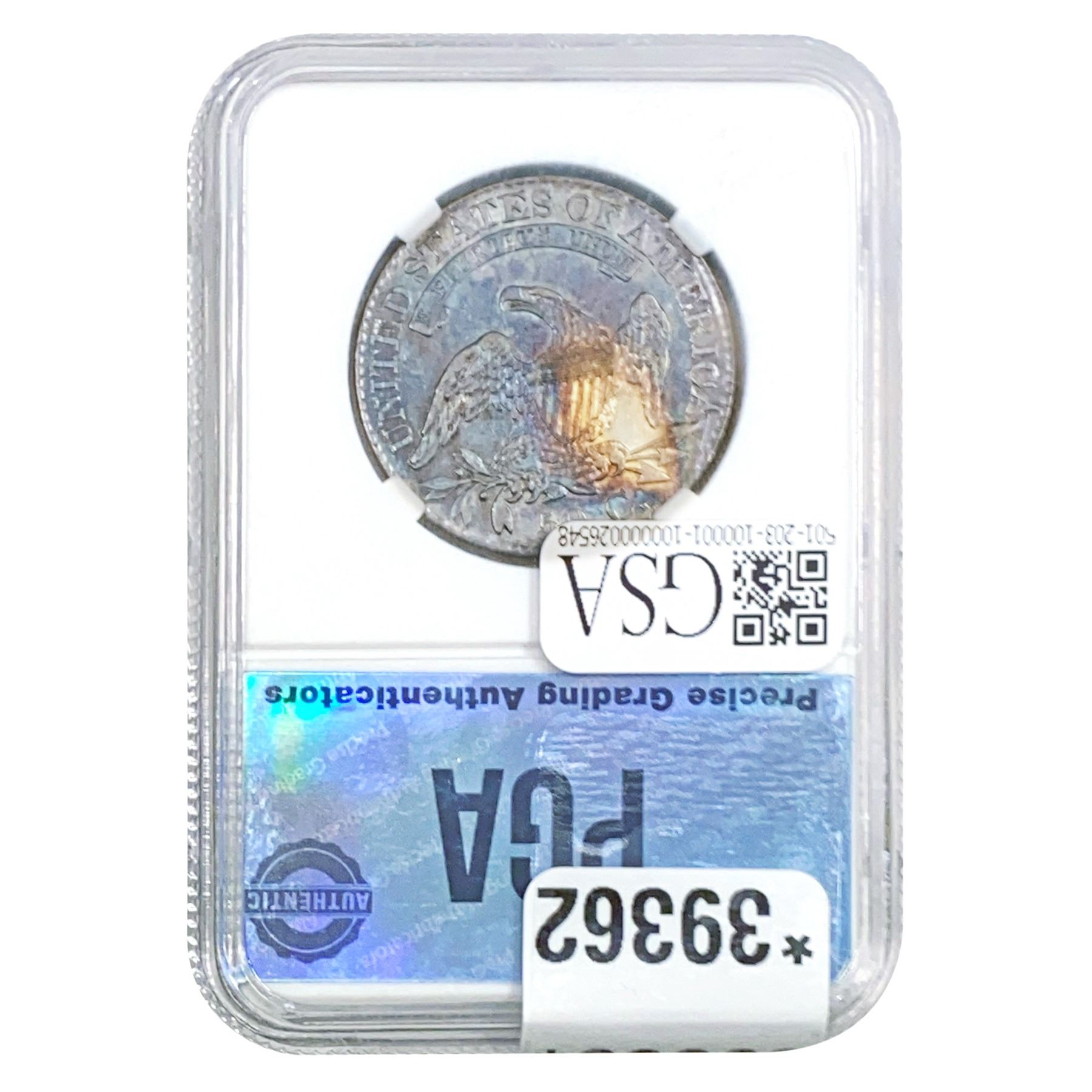COINS AND CURRENCY LISTED IN GSA’S CATALOG AS GRADED AND ENCAPSULATED BY PCGS, NGC, ANACS, ICG, PCGS CURRENCY, PMG, PCGS BANKNOTE GRADING, CMC OR ANY OTHER THIRD-PARTY GRADING SERVICE ARE LIKEWISE SOLD “AS-IS” EXCEPT AS EXPRESSLY SET FORTH HEREIN. ALL THIRD-PARTY GRADING SERVICE GUARANTEES, INCLUDING AUTHENTICITY, ARE THE SOLE RESPONSIBILITY OF THE THIRD-PARTY GRADING SERVICE AND NOT WARRANTIES OR GUARANTEES OF GSA. BIDDERS SHOULD CONTACT THESE THIRD-PARTY GRADING SERVICES DIRECTLY WITH RESPECT TO ANY CLAIMS OR QUESTIONS THEY MAY HAVE CONCERNING THEIR GUARANTEES AND WARRANTIES. BIDDERS ACKNOWLEDGE AND AGREE THAT AUCTIONEER IS NOT BOUND BY OR LIABLE FOR ANY OPINION OR CERTIFICATION BY ANY THIRD-PARTY GRADING SERVICE. REMOVAL OF A PRODUCT FROM ITS PROTECTIVE CASING OR HOLDER OR ALTERATION OF ANY COIN HOLDER WAIVES ALL RIGHTS CONCERNING THE PRODUCT CONTAINED THEREIN.